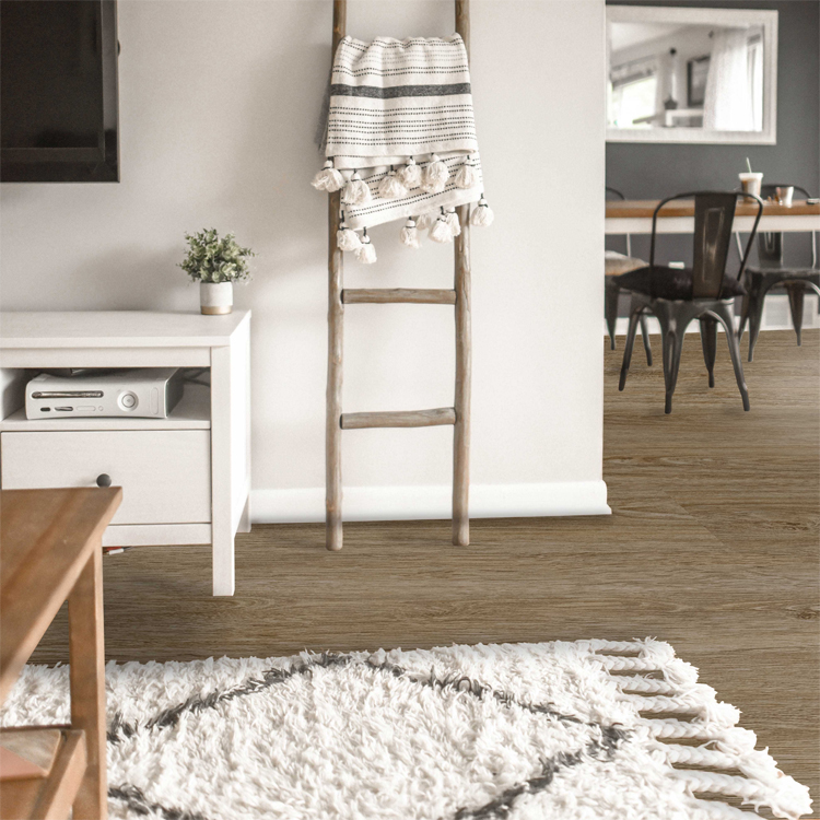 SPC (Stone Plastic Composite). Lamas de medidas standard 100% resistente a la humedad, a diferencia de otros suelos, sobre todo de los suelos laminados, no sufre la más mínima alteración dimensional por efectos de la humedad.